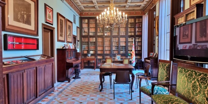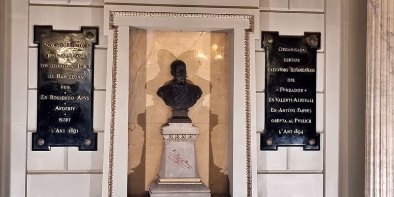 Rossend Arús i Arderiu dicta en su testamento que sus herederos funden una biblioteca pública en Barcelona, la cual se inauguró, en el Passeig de Sant Joan, con un fondo inicial de 24.000 volúmenes. Hoy en día, contemplar sus estanterías, el mobiliario, los archivadores, es un paseo histórico que nos transporta a finales del siglo XIX